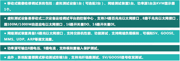 - SOMP7100M 移動式鏡像檢修調(diào)試系統(tǒng)具備SCD可視化比對、改擴建關(guān)聯(lián)設(shè)備子CRC校驗、虛擬信號交互測試、下裝配置校驗、閉環(huán)一鍵式測試、現(xiàn)場二次安措邏輯預演等功能,可適用于技改、擴建、檢修、消缺及更換式檢修、系統(tǒng)聯(lián)調(diào)等場景下的單設(shè)備調(diào)試、整間隔調(diào)試,顯著提高智能變電站工程檢修、擴建等工況下二次設(shè)備現(xiàn)場調(diào)試技術(shù)水平,降低改擴建工程技術(shù)風險,實現(xiàn)智能變電站運維檢修、擴建過程中少傳動、免傳動,縮短現(xiàn)場測試時間。
