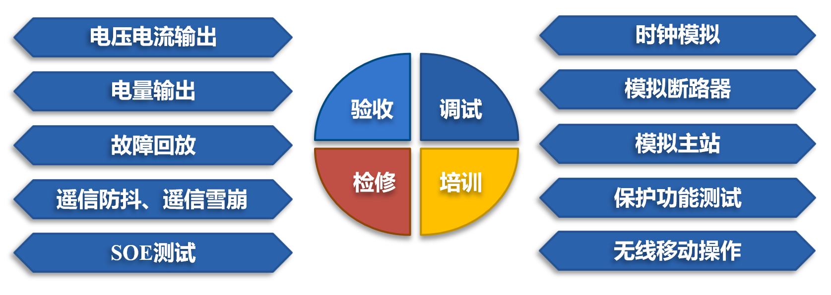 ● 支持輸出直流電壓、電流,并以直流電壓、電流為變量,測(cè)試配電終端的相關(guān)性能;